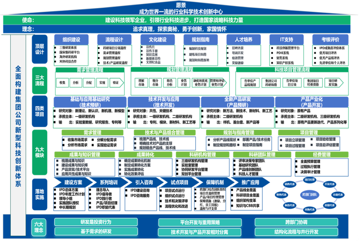 科技創(chuàng)新戰(zhàn)略是企業(yè)實(shí)現(xiàn)可持續(xù)發(fā)展的核心。企業(yè)需圍繞發(fā)展戰(zhàn)略和目標(biāo),明確技術(shù)創(chuàng)新的重點(diǎn)領(lǐng)域,設(shè)定目標(biāo)和指標(biāo),制定實(shí)施計(jì)劃,并強(qiáng)化組織支持和監(jiān)督評估。科技創(chuàng)新體系架構(gòu)涵蓋創(chuàng)新目標(biāo)、行為、動力和支撐系統(tǒng)。例如,某集團(tuán)公司以建設(shè)科技領(lǐng)軍企業(yè)為使命,打造涵蓋頂層設(shè)計(jì)、需求管理、項(xiàng)目管理等多方面的新型科技創(chuàng)新體系,通過追求真理、探索奧秘等理念,推動企業(yè)創(chuàng)新。