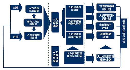 人力資源規(guī)劃(Human Resource Plan, HRP),通常也被稱為人力資源計(jì)劃,是為實(shí)施企業(yè)的發(fā)展戰(zhàn)略,完成企業(yè)的生產(chǎn)經(jīng)營(yíng)目標(biāo),根據(jù)企業(yè)內(nèi)外環(huán)境和條件的變化,通過(guò)對(duì)企業(yè)未來(lái)的人力資源的需求和供給狀況的分析及估計(jì),運(yùn)用科學(xué)的方法進(jìn)行規(guī)劃設(shè)計(jì),對(duì)人力資源的獲取、配置、使用、保護(hù)等各個(gè)環(huán)節(jié)進(jìn)行職能性策劃,制定企業(yè)人力資源供需平衡計(jì)劃以及人力資源各相關(guān)職能的發(fā)展或保障計(jì)劃,以確保組織在需要的時(shí)間和需要的崗位上,獲得各種必需的人力資源,并保證事(崗位)得其人、人盡其才,從而實(shí)現(xiàn)人力資源與其它資源的合理配置,實(shí)現(xiàn)對(duì)員工的有效激勵(lì)、開發(fā)與管理。
