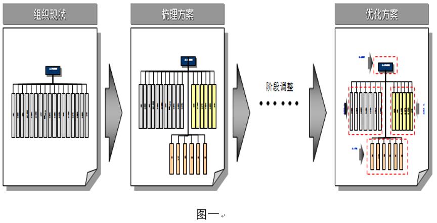 組織結(jié)構(gòu)梳理方案的設(shè)計(jì)是在現(xiàn)行組織結(jié)構(gòu)不變的情況下從三項(xiàng)關(guān)鍵內(nèi)容著手:明晰職責(zé)體系、適應(yīng)業(yè)務(wù)運(yùn)作、簡(jiǎn)化管理層級(jí)。