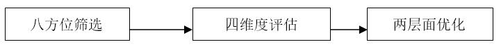 按照前述方法進行“八大工程”的設(shè)計,將會面臨一個難題,即:從哪些維度、哪些標(biāo)準(zhǔn)來進行“八大工程”的篩選?答案是,企業(yè)可以通過“842”方法進行篩選,即:八方位篩選、四維度評估和兩層面優(yōu)化,如圖13-2所示。