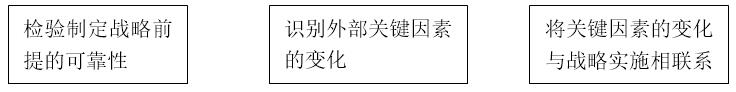一般來說,戰(zhàn)略都是根據(jù)假設(shè)、預(yù)測(cè)的背景制定的。戰(zhàn)略決策者們往往都會(huì)有意無意地作出有關(guān)未來需求、技術(shù)、價(jià)格、政府政策、市場(chǎng)競(jìng)爭(zhēng)以及一系列外界變化因素的推測(cè),這些推測(cè)就是制定戰(zhàn)略的前提,而外部環(huán)境的變化又往往會(huì)影響到推測(cè)的有效性。因此,監(jiān)視外部環(huán)境因素的變化,特別是關(guān)鍵戰(zhàn)略因素的變化,就顯得尤為必要。需要進(jìn)行的工作如圖2所示:
