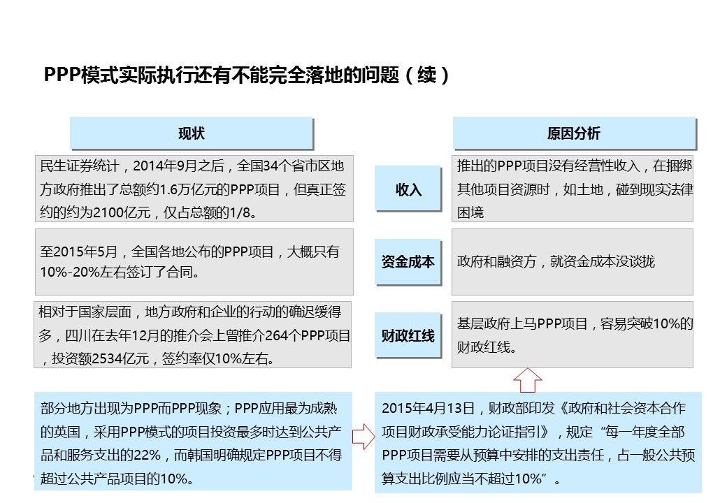 七、PPP模式實(shí)際執(zhí)行還有不能完全落地的問(wèn)題