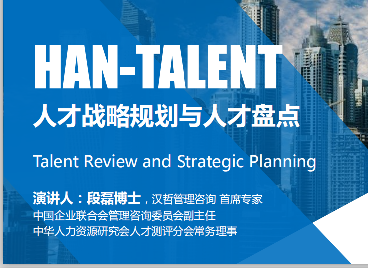 近年來,經(jīng)濟結(jié)構(gòu)轉(zhuǎn)型升級、科技創(chuàng)新層出不窮,各行各業(yè)都認識到,需要重新認識商業(yè)世界,需要對企業(yè)的未來進行系統(tǒng)謀劃,而謀劃的重要內(nèi)容之一就是未來的人才與人才管理。有關(guān)于人才盤點、人力資源審計、人才戰(zhàn)略規(guī)劃,業(yè)內(nèi)有各種不同的說法,這三者之間是否有聯(lián)系,是怎樣的聯(lián)系和區(qū)別,作為企業(yè)如何運用這些方法去規(guī)劃和指導(dǎo)人才管理實踐?帶著這些問題,本次論壇請到了中華人力資源研究會人才分會常務(wù)理事、北京大學(xué)人力資源開發(fā)與管理研究中心專家、中企聯(lián)管理咨詢委員會副主任委員、從事戰(zhàn)略人力資源體系建設(shè)與培訓(xùn)17年的實戰(zhàn)型專家段磊博士為大家剖析三個概念、講述三種方法、分享三個案例。