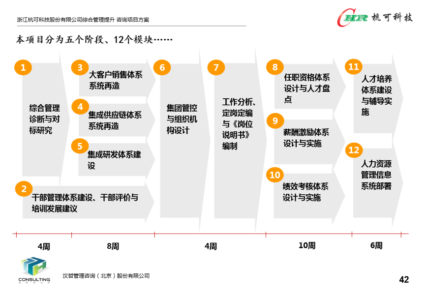 整個(gè)項(xiàng)目計(jì)劃歷時(shí)八個(gè)月,將圍繞四個(gè)目標(biāo),建成四大體系,構(gòu)建四支隊(duì)伍,項(xiàng)目的落地實(shí)施將助力杭可科技走上國際化、規(guī)?;c職業(yè)化之路,將注定在企業(yè)的發(fā)展歷史上寫下濃墨重彩的一筆。