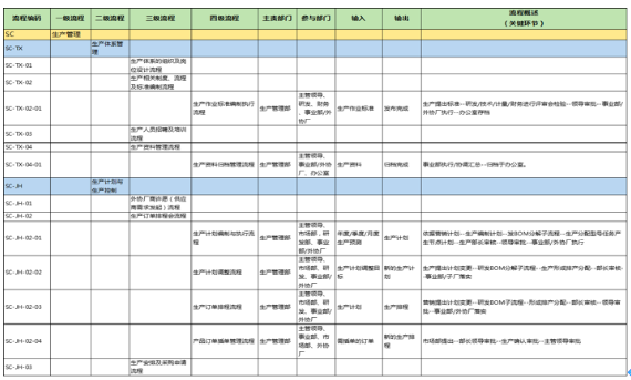 第三階段:主要為二批流程優(yōu)化、流程配套文件編寫,包含生產(chǎn)管理、采購、倉儲(chǔ)、交付、技術(shù)服務(wù)、質(zhì)量等流程設(shè)計(jì)(含表單)。
