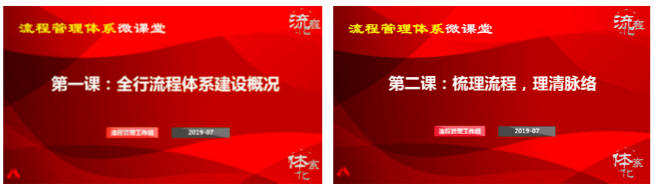 工作組在方案設(shè)計的同時,同步開展了系列流程管理知識小手冊宣傳、流程管理方法工具培訓、流程工作成果匯報交流、流程體系微課堂等有助于流程氛圍營造和知識傳播的工作,如在項目調(diào)研初期,運營及流程管理部流程處的同事們精心制作了流程知識小手冊,發(fā)放給被訪談人,共同開發(fā)錄制了5次系列流程管理微課程。
