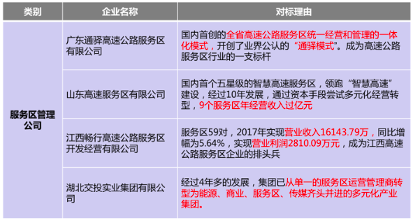 收集與高速公路、廣通公司業(yè)務(wù)相關(guān)的外部行業(yè)資料、標(biāo)桿企業(yè)資料等進(jìn)行深度研究,把握高速公路行業(yè)發(fā)展趨勢及其他高速公路企業(yè)經(jīng)營性板塊的發(fā)展思路與定位,把握廣通公司業(yè)務(wù)所在行業(yè)的發(fā)展趨勢、商業(yè)模式,研究標(biāo)桿企業(yè)的發(fā)展脈絡(luò)和成功經(jīng)驗,通過外部環(huán)境的綜合分析,對廣通公司在湖南高速中的戰(zhàn)略定位、廣通公司的業(yè)務(wù)選擇、發(fā)展路徑等提供參考和借鑒。