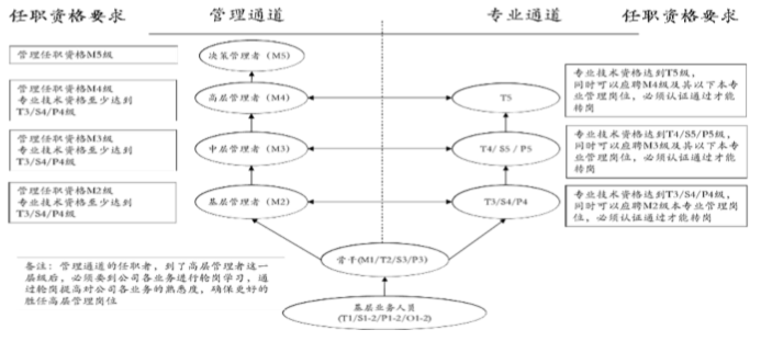 為了拓寬員工職業(yè)發(fā)展通道,設(shè)計(jì)不同職業(yè)發(fā)展通道之間的接口具體如下圖所示。