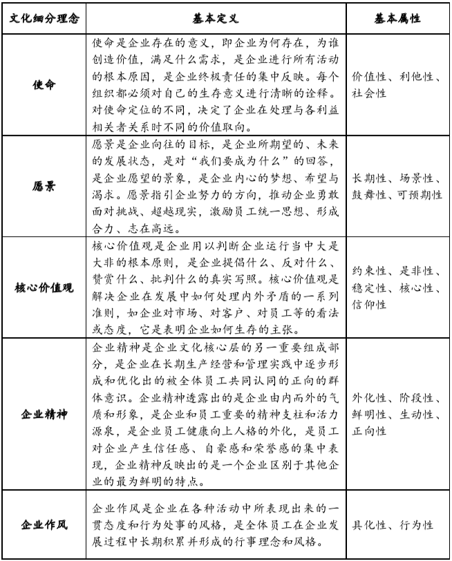 表2:企業(yè)文化細(xì)分理念定義及屬性判定表