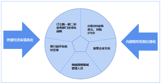 GE歷經(jīng)百年風(fēng)雨,適應(yīng)著各種環(huán)境,不斷在調(diào)整中發(fā)展,在自我變革中新生。GE在近代史上,被人稱道的是上個(gè)世紀(jì)80年代杰克為·韋爾奇領(lǐng)導(dǎo)的戰(zhàn)略變革。