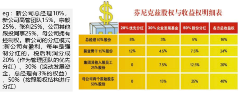 1、母公司創(chuàng)始人控股新公司,同時收益權(quán)上充分激勵創(chuàng)業(yè)團隊;創(chuàng)業(yè)團隊成員必須掏錢參股,以身家性命賭未來。