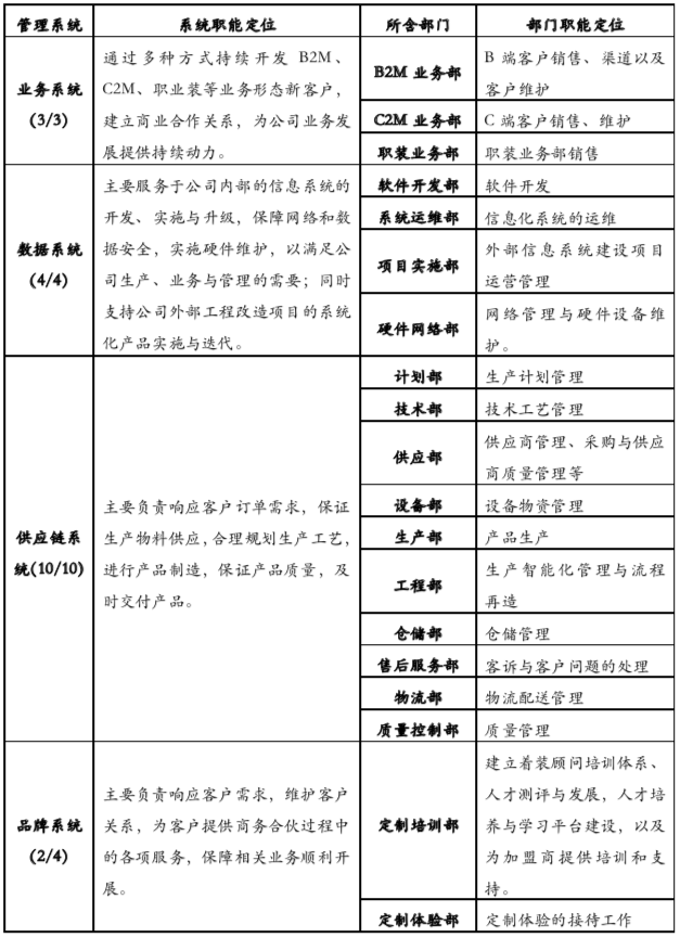 酷特智能組織機構(gòu)中主要部門的功能定位(表2:酷特智能主要部門功能定位):