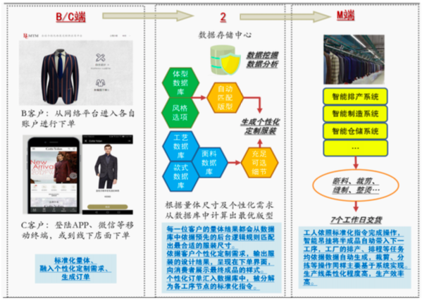 這種經(jīng)營模式特點:“由訂單驅(qū)動的大規(guī)模個性化定制”(Customer/BusinesstoManufacturer+MadetoMeasure,簡稱為C/B2M+MTM)。