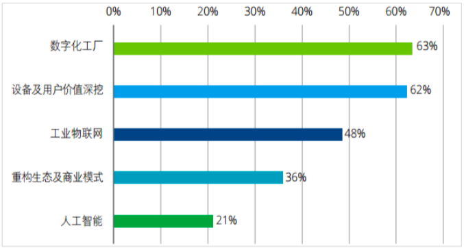 當前,中國工業(yè)企業(yè)智能制造五大部署重點依次為:數(shù)字化工廠、設備及用戶價值深挖、工業(yè)物聯(lián)網(wǎng)、重構商業(yè)模式以及人工智能。