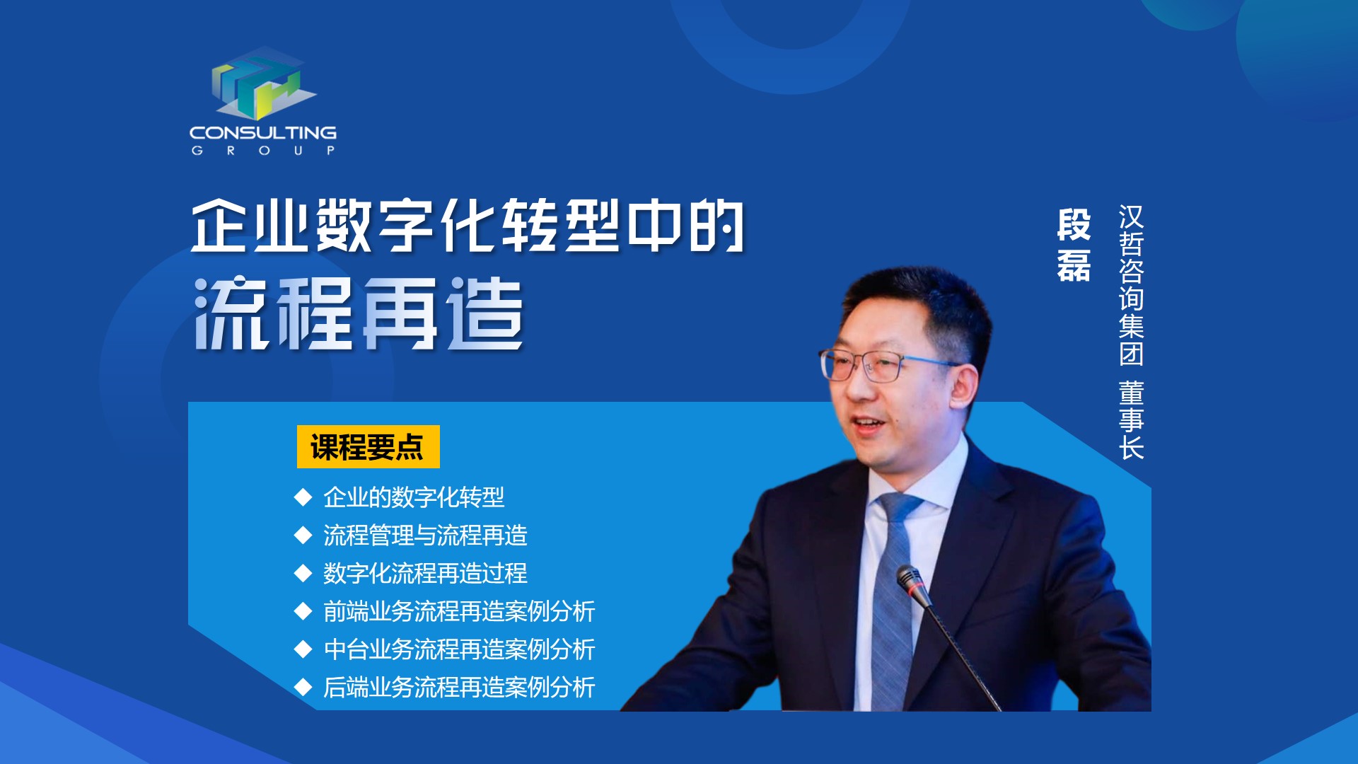 本課程系統(tǒng)介紹了流程、管理管理、流程再造的概念與發(fā)展歷程,流程與組織的關(guān)系,并對數(shù)字化轉(zhuǎn)型中流程再造的四大關(guān)鍵步驟-流程分層分類、業(yè)務(wù)模型搭建、流程梳理與評估、流程優(yōu)化與再造進(jìn)行了系統(tǒng)的介紹。同時,結(jié)合華為、海爾、酷特、福特、某商業(yè)銀行、某IT公司等多家企業(yè)的案例,對于如何在前臺、中臺、后臺開展業(yè)務(wù)流程再造并支持?jǐn)?shù)字化轉(zhuǎn)型,進(jìn)行了分析與說明。本課程理論聯(lián)系實(shí)際,兼顧了對于數(shù)字化轉(zhuǎn)型的理解,對于流程管理基礎(chǔ)知識的系統(tǒng)學(xué)習(xí),以及對于企業(yè)前中后臺流程再造實(shí)踐的充分分享。