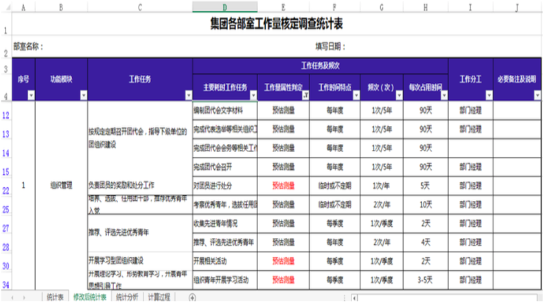 職能部室崗位采取工作飽和度測量法。具體步驟為:
