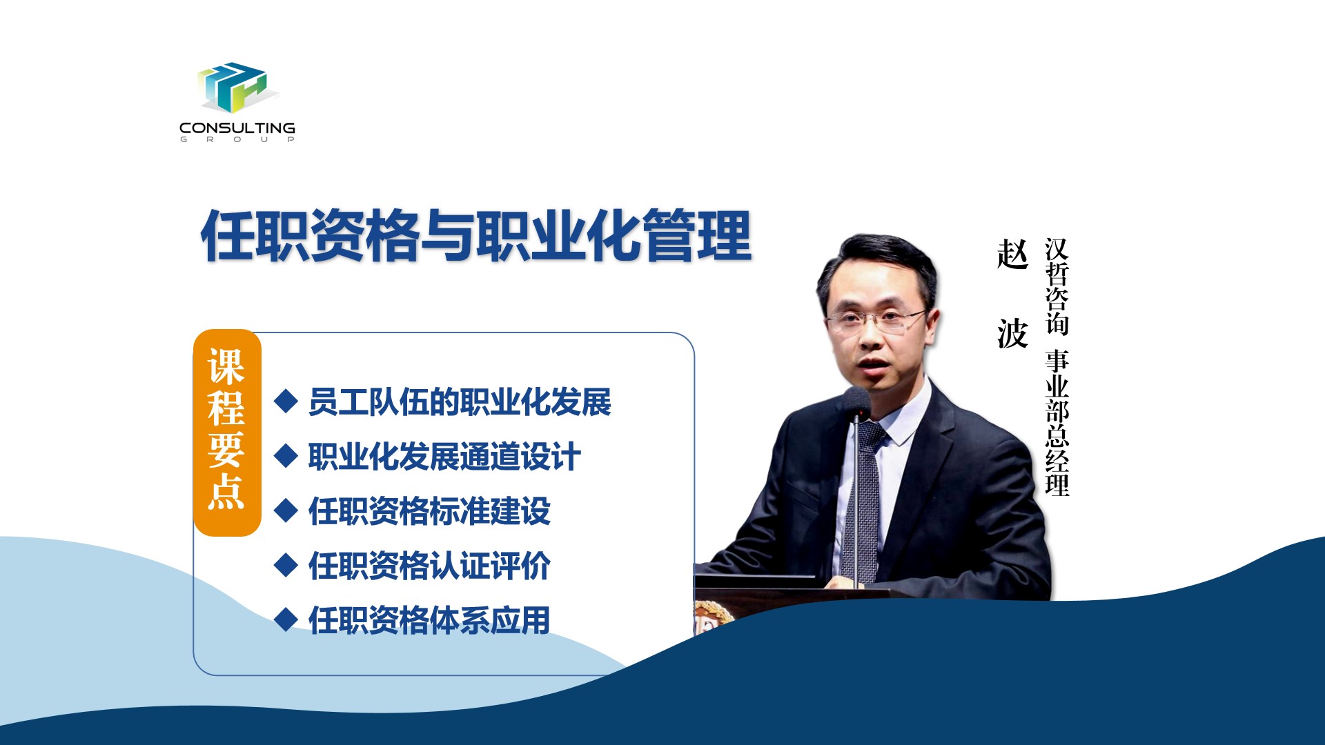 講師趙波,漢哲管理咨詢事業(yè)部總經(jīng)理、西安科技大學(xué)碩士、國(guó)際注冊(cè)管理咨詢師。趙波老師在組織體系設(shè)計(jì)、人力資源管理等領(lǐng)域有豐富的理論和咨詢經(jīng)驗(yàn)。多年來(lái),咨詢及培訓(xùn)客戶包括:民航成都電子、中核海得威、中廣核、中國(guó)郵政、蘇州金螳螂、北京電控集團(tuán)、呼市城發(fā)集團(tuán)等知名企事業(yè)單位。