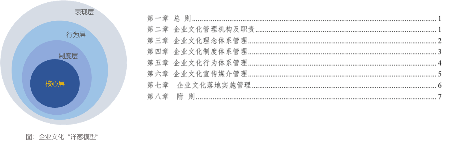 《集團企業(yè)文化管理制度》是企業(yè)文化工作的綱領性文件,以企業(yè)文化“洋蔥模型”為基礎,對企業(yè)文化管理工作的組織架構(gòu)、企業(yè)文化工作范疇、工作內(nèi)容和工作重點進行規(guī)范和說明,二階段主要工作內(nèi)容也基本圍繞本制度主體內(nèi)容組織開展。