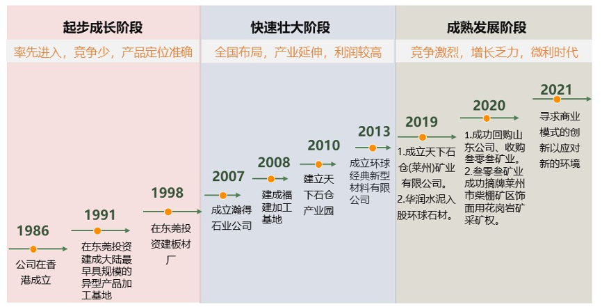 該企業(yè)是我國大陸地區(qū)建成時間較早、規(guī)模最大的綜合型建筑裝飾石材企業(yè)之一,業(yè)務(wù)涵蓋天然石、人造石、礦山開采、幕墻及產(chǎn)業(yè)園區(qū)等多領(lǐng)域布局的完善產(chǎn)業(yè)鏈結(jié)構(gòu),在福建、天津、山東、常平等多地設(shè)分支機構(gòu)。