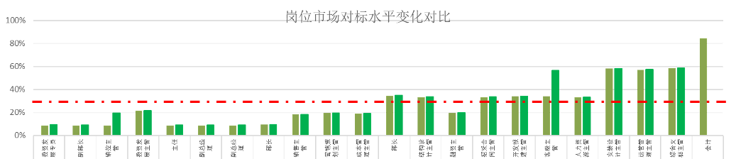 1、薪酬設(shè)計(jì),通過市場(chǎng)對(duì)標(biāo),各崗位的水平有了明顯的提高,如下圖所示: