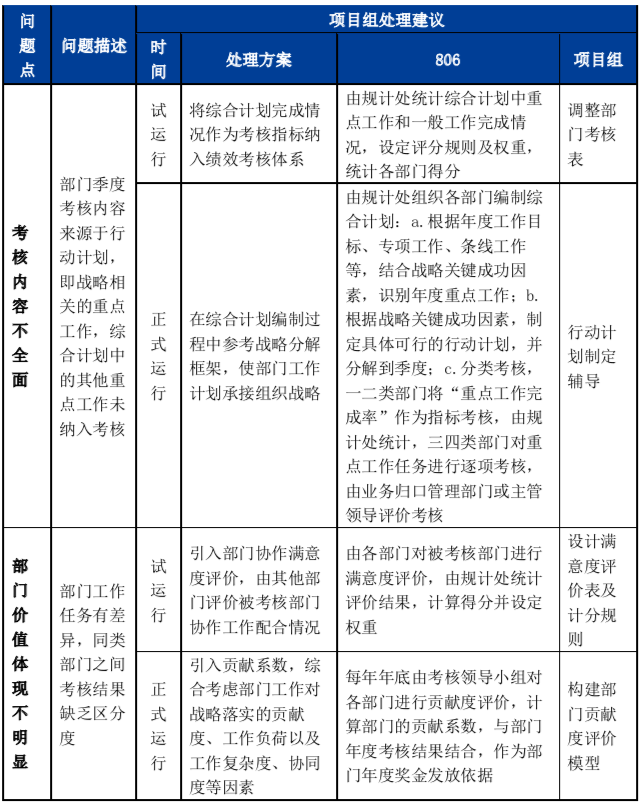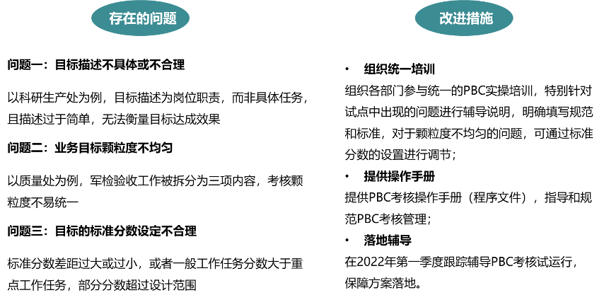 為驗(yàn)證方案可行性,分別在組織考核和崗位考核方案設(shè)計(jì)完成后開展試點(diǎn)考核,模擬考核流程和數(shù)據(jù),并針對反饋問題進(jìn)行方案調(diào)整和完善。