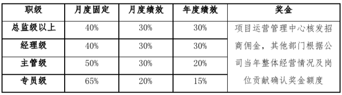統(tǒng)一年薪模式與崗位績效工資模式的工資結(jié)構(gòu),約定不同職級(jí)的薪酬固定浮動(dòng)比例,優(yōu)化福利項(xiàng)目及所占比例,改善固定薪資過高的問題。
