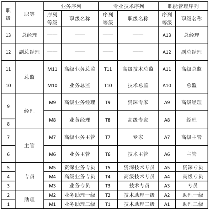 根據(jù)公司管理需要,結(jié)合公司現(xiàn)階段發(fā)展特點(diǎn)、行業(yè)特點(diǎn),以及未來人力資源管理進(jìn)一步要求,規(guī)劃職級(jí)體系和晉升通道,并明確職級(jí)評(píng)定、調(diào)整規(guī)則,為員工提供成長空間和職業(yè)發(fā)展指導(dǎo)。