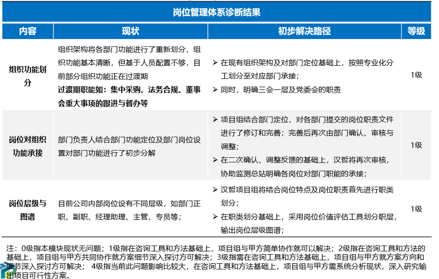 (2)崗位職責(zé)承接:部分崗位對(duì)部門的職責(zé)承接不到位,且不同層級(jí)的崗位承擔(dān)的職責(zé)無(wú)差異,如資深崗與普通崗。