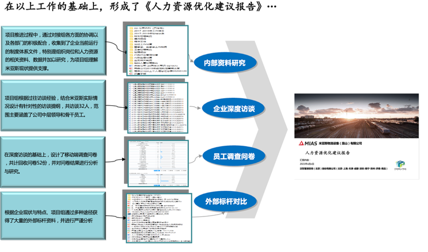 項目啟動之初,通過內(nèi)部資料研究、企業(yè)深度訪談、員工調(diào)查問卷、外部標桿資料對比,政策研究等維度進行全面診斷,發(fā)現(xiàn)問題并提出改進的思路。