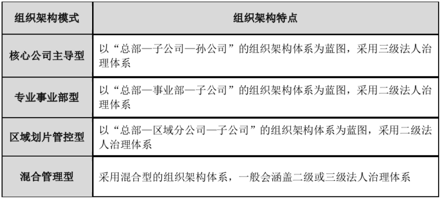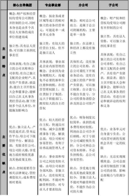 該組織架構(gòu)模式兼有子集團(tuán)、子公司、事業(yè)部等多種不同的二級企業(yè)組織形式,具有較強(qiáng)的兼容性與靈活性,適合對下屬業(yè)務(wù)進(jìn)行差異化管理。