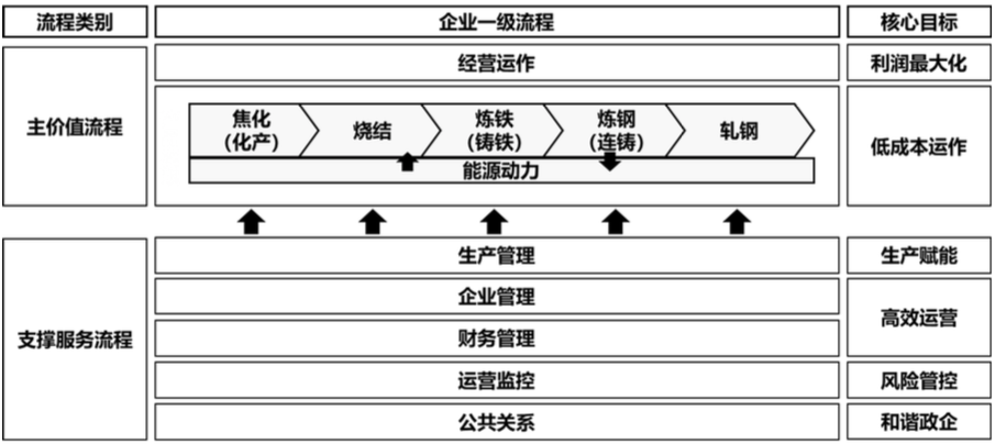 但其忽略了企業(yè)組織結(jié)構(gòu)的構(gòu)建,是一切流程的的始端,而流程是基于企業(yè)的業(yè)務(wù)流,是研究提高企業(yè)運(yùn)轉(zhuǎn)效率的基礎(chǔ)。企業(yè)面臨的未來競爭,是流程體系與流程體系的對抗。因此,通過流程設(shè)計企業(yè)的組織結(jié)構(gòu),才是最為科學(xué)合理的方法。本文試圖通過在鋼鐵企業(yè)組織結(jié)構(gòu)設(shè)計中的實(shí)踐,來闡述如何運(yùn)用流程的思維設(shè)計制造企業(yè)組織結(jié)構(gòu)。