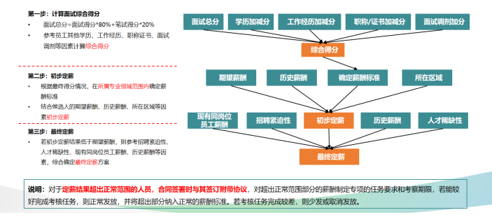 通過在面試過程中,對員工基礎(chǔ)條件的判定和評價,形成綜合評價結(jié)果,綜合研究院需求情況、市場薪酬水平和候選人特點等因素,確定新員工薪酬標準。